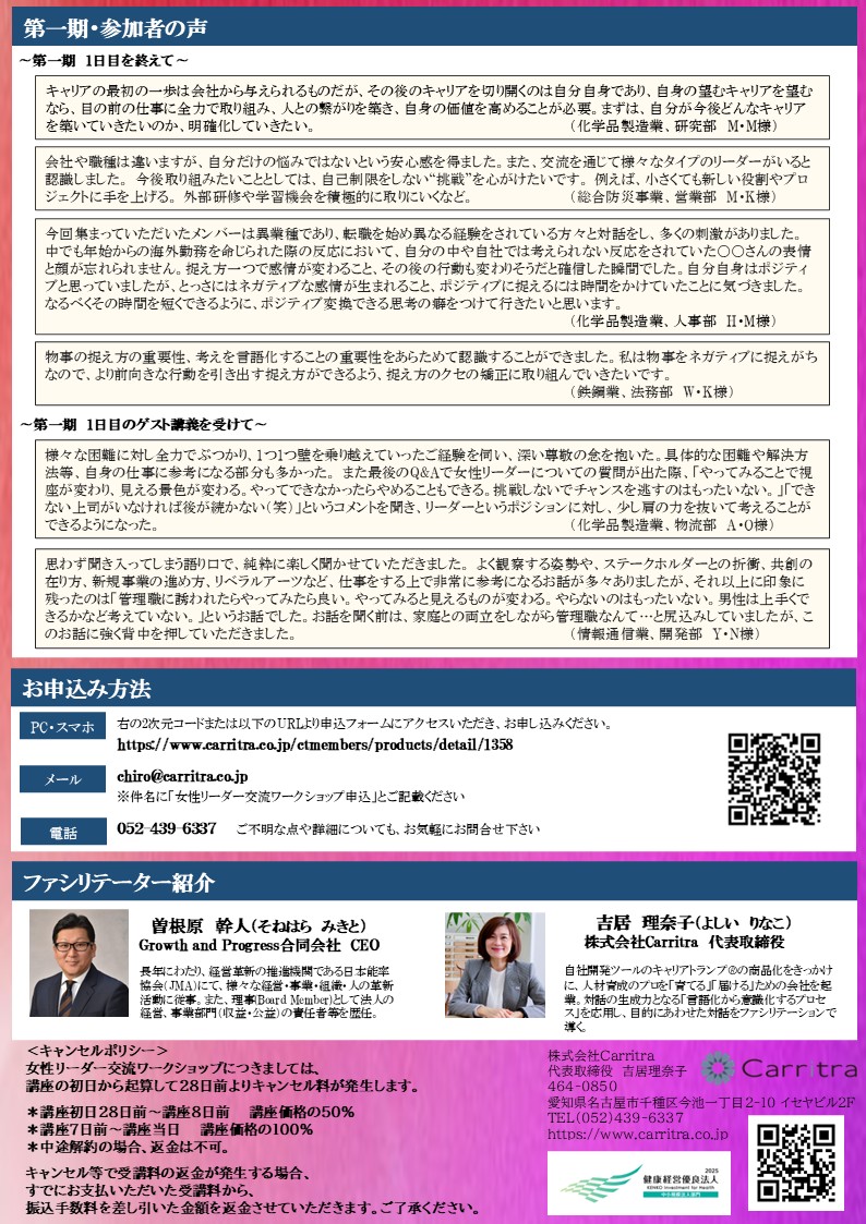 <第二期>女性リーダー交流ワークショップのご案内