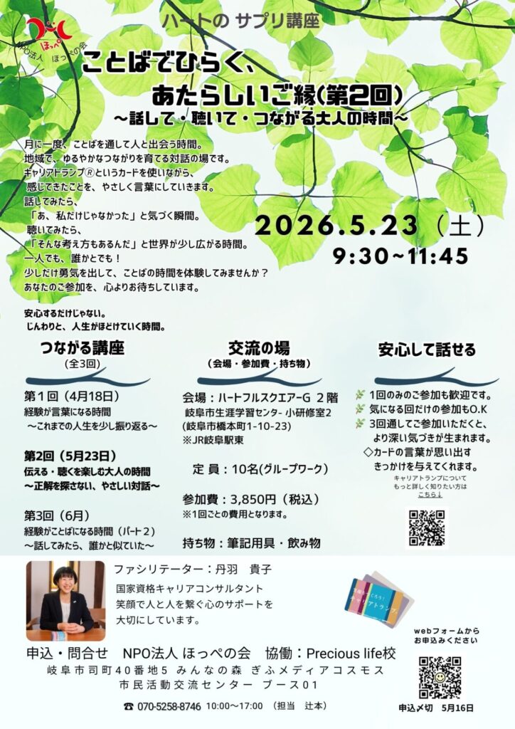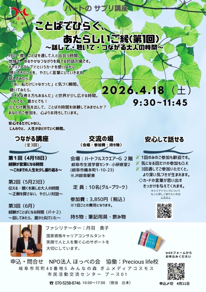 4月から始まる「ハートのサプリ講座(全3回)」は、